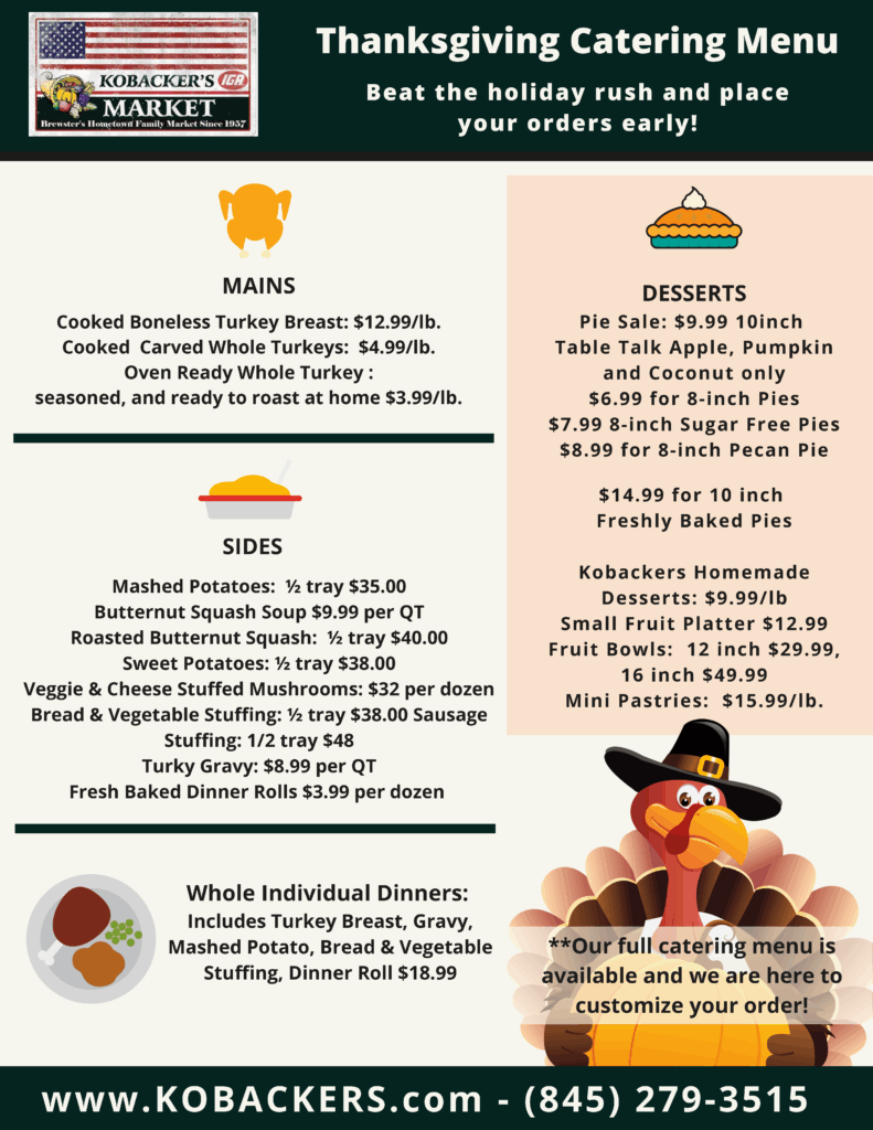 Thanksgiving Catering Menu Kobacker’s MarketAll Major Credit Cards Accepted We Deliver – Please call for Details